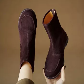 Autumn Suede Leather Chelsea Boots for Women – Low Heel Slip-On Ankle Boots