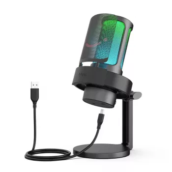 USB Microphone with RGB Lighting, Touch Mute & Real-Time Monitoring
