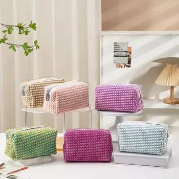 Portable Women’s Square Corduroy Makeup Bag – Lipstick & Cosmetic Pouch