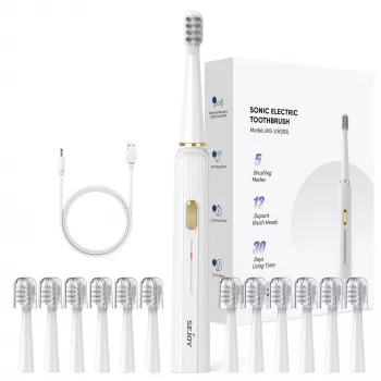 Rechargeable Sonic Electric Toothbrush with 12 Brush Heads – 5 Cleaning Modes