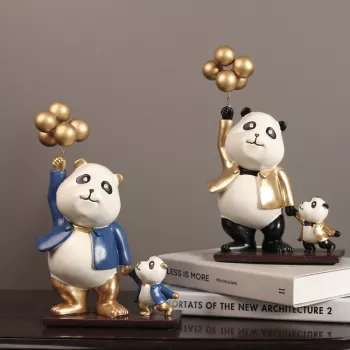 Cute Panda Sculpture with Golden Balloon – Resin Decorative Figurine