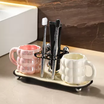 Elegant European Ceramic Mouthwash and Toothbrush Holder Set with Tray