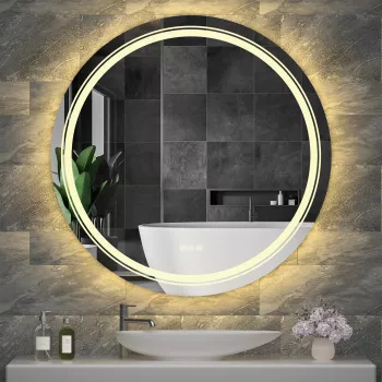 900mm Round LED Bathroom Mirror with Dimmable Lights & Anti-Fog