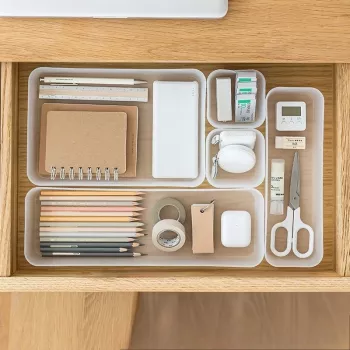 Adjustable Desk Drawer Organizer with Built-in Pen Holder