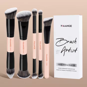 5pcs Double Ended Makeup Brush Set for Foundation, Contour, Blush & Powder