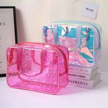 Large Stars Clear Makeup Bag with Portable Strap – Waterproof PVC Toiletry Organizer