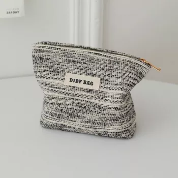 Black & White Striped Canvas Makeup Bag – Portable Cosmetic & Coin Pouch